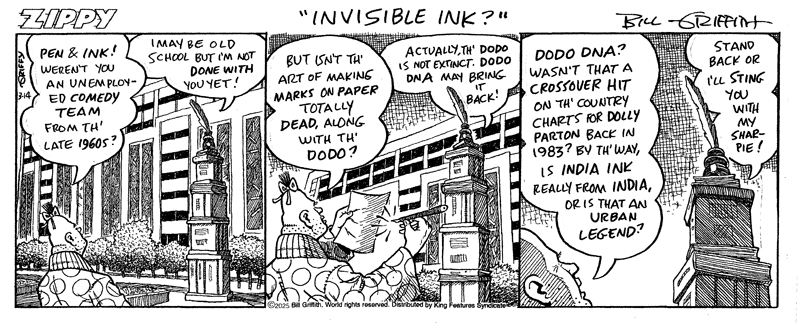 If you want a Signed Print of any daily or Sunday Zippy strip, tell us either the DATE or TITLE of the strip in your email.