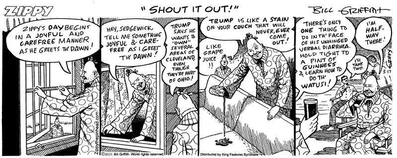 If you want a Signed Print of any daily or Sunday Zippy strip, tell us either the DATE or TITLE of the strip in your email.
