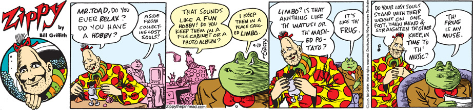 To order a Signed Print or Original Art of any Zippy strip, just write us at griffy@zippythepinhead.com and request a Paypal purchase link. Personal checks also remain an option (send check only after making your email request: Pinhead Productions, PO Box 88, Hadlyme CT 06439).