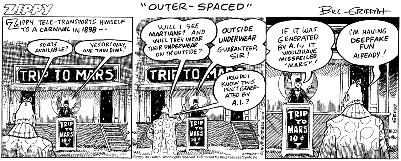 To order a Signed Print or Original Art of any Zippy strip, just write us at griffy@zippythepinhead.com and request a Paypal purchase link. Personal checks also remain an option (send check only after making your email request: Pinhead Productions, PO Box 88, Hadlyme CT 06439).
