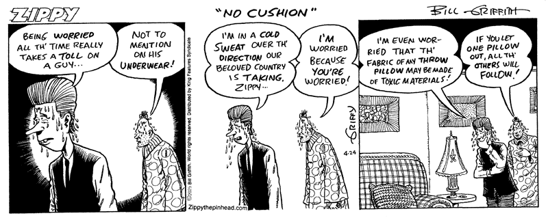 To order a Signed Print or Original Art of any Zippy strip, just write us at griffy@zippythepinhead.com and request a Paypal purchase link. Personal checks also remain an option (send check only after making your email request: Pinhead Productions, PO Box 88, Hadlyme CT 06439).