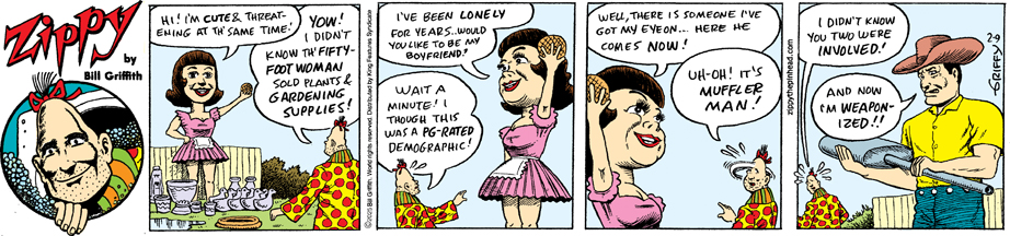 To order a Signed Print or Original Art of any Zippy strip, just write us at griffy@zippythepinhead.com and request a Paypal purchase link. Personal checks also remain an option (send check only after making your email request: Pinhead Productions, PO Box 88, Hadlyme CT 06439).