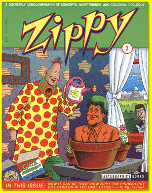 Features the 12-page tale, "Now It Can Be Told", delineating Zippy's secret role in the election of Bill Clinton.