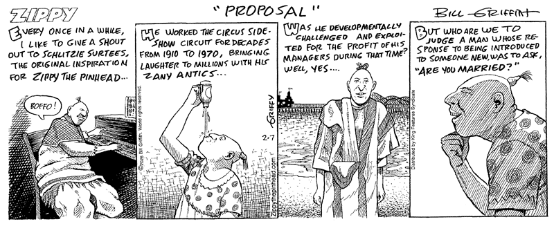 To order a Signed Print or Original Art of any Zippy strip, just write us at griffy@zippythepinhead.com and request a Paypal purchase link. Personal checks also remain an option (send check only after making your email request: Pinhead Productions, PO Box 88, Hadlyme CT 06439).